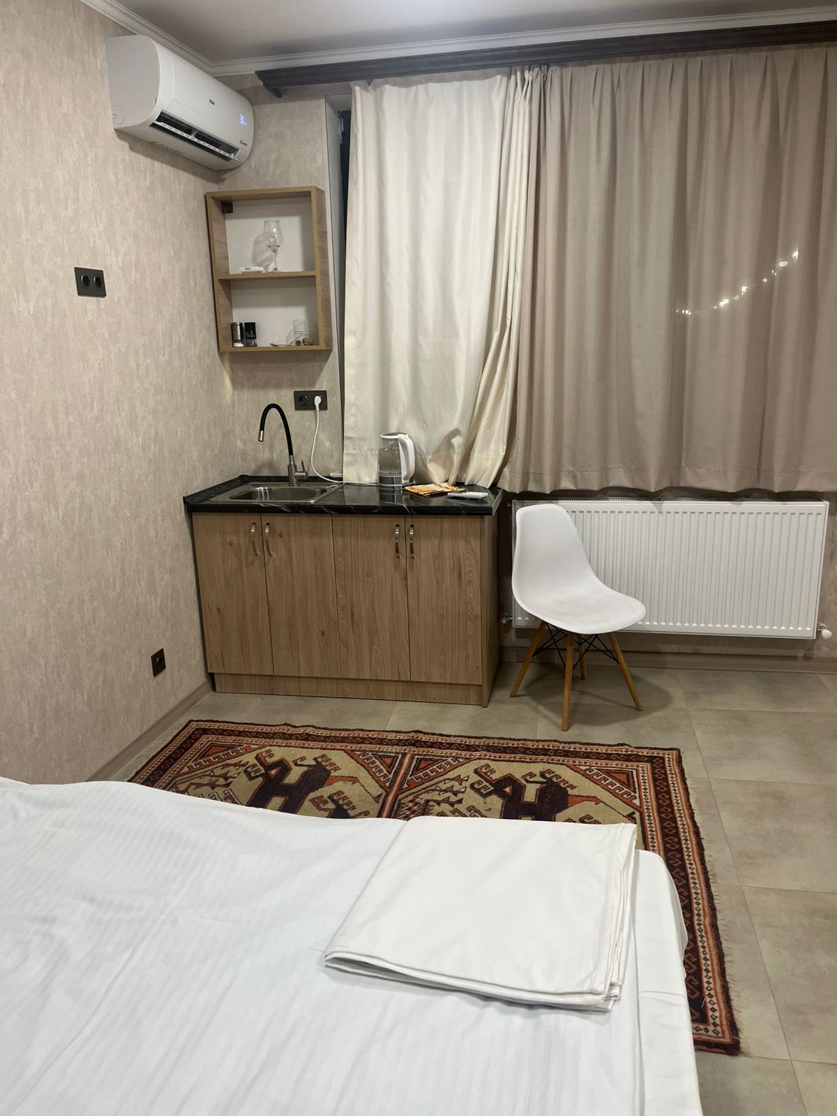 A peaceful, light-filled studio overlooking the garden — perfect for travelers seeking comfort, privacy, and a refreshing natural atmosphere just minutes from Zvartnots Airport.